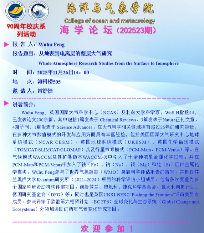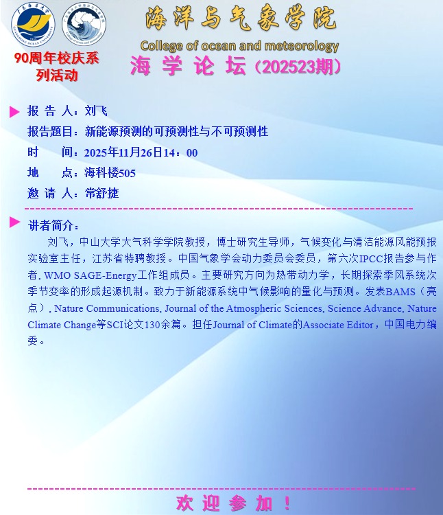 【学术会议通知】海洋与气象学院“海学论坛”(202523期)