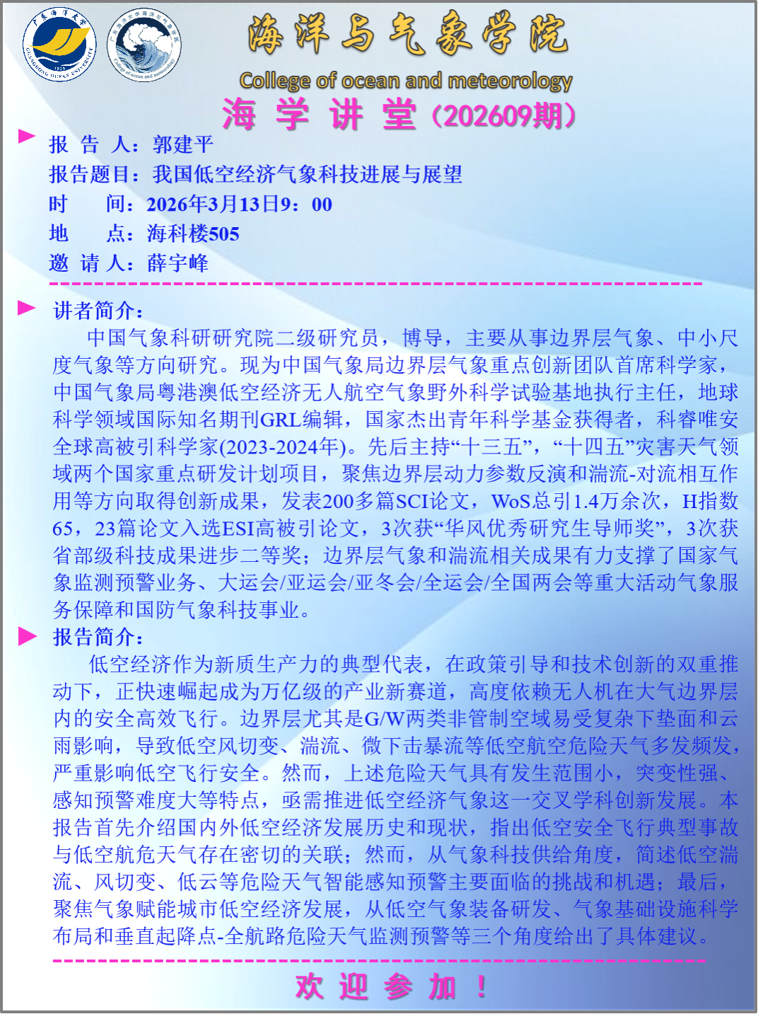 【学术会议通知】海洋与气象学院“海学讲堂”(202609期)