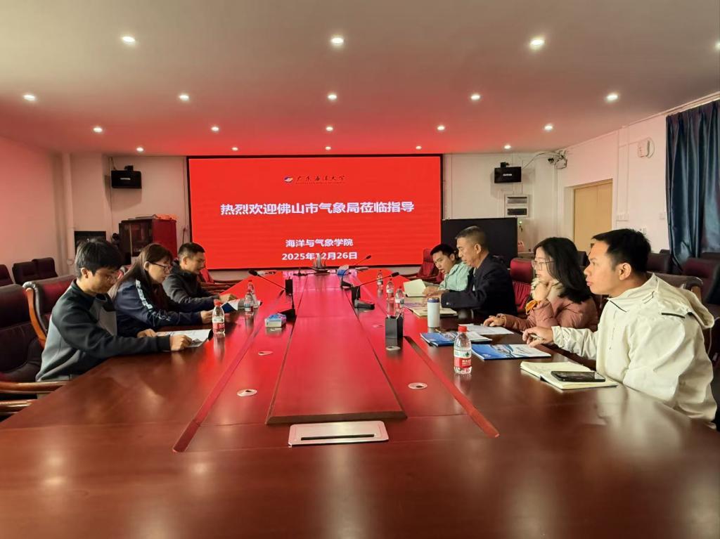 12月26日上午,佛山市气象局李莉、刘春、钟宇豪一行3人到海洋与气象学院座谈交流。学院党委副书记胡森林,辅导员钟艺晴、黄瑞焕、林恒宗以及2026届学生代表参加座谈会。双方围绕当前就业形势及学生实习等问题进行了深入研讨。