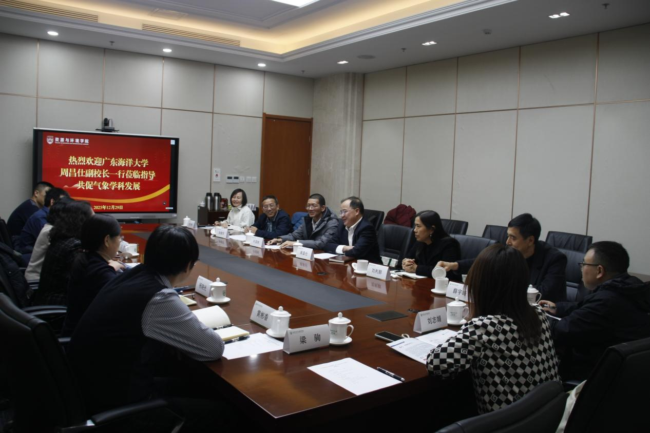为加强气象学科建设、拓展高水平合作平台,推动气象领域高层次应用型人才培养,12月29-30日,我校党委常委、副校长周昌仕教授率队前往北京,先后访问了中国气象局气象探测中心、气象干部培训学院、国家气象中心,并赴中国农业大学、北京大学开展调研交流。研究生院院长叶国栋,海洋与气象学院党委书记刘利群,南海海洋气象研究院院长徐建军、副院长薛宇峰、范伶俐教授、张宇教授等陪同参加。